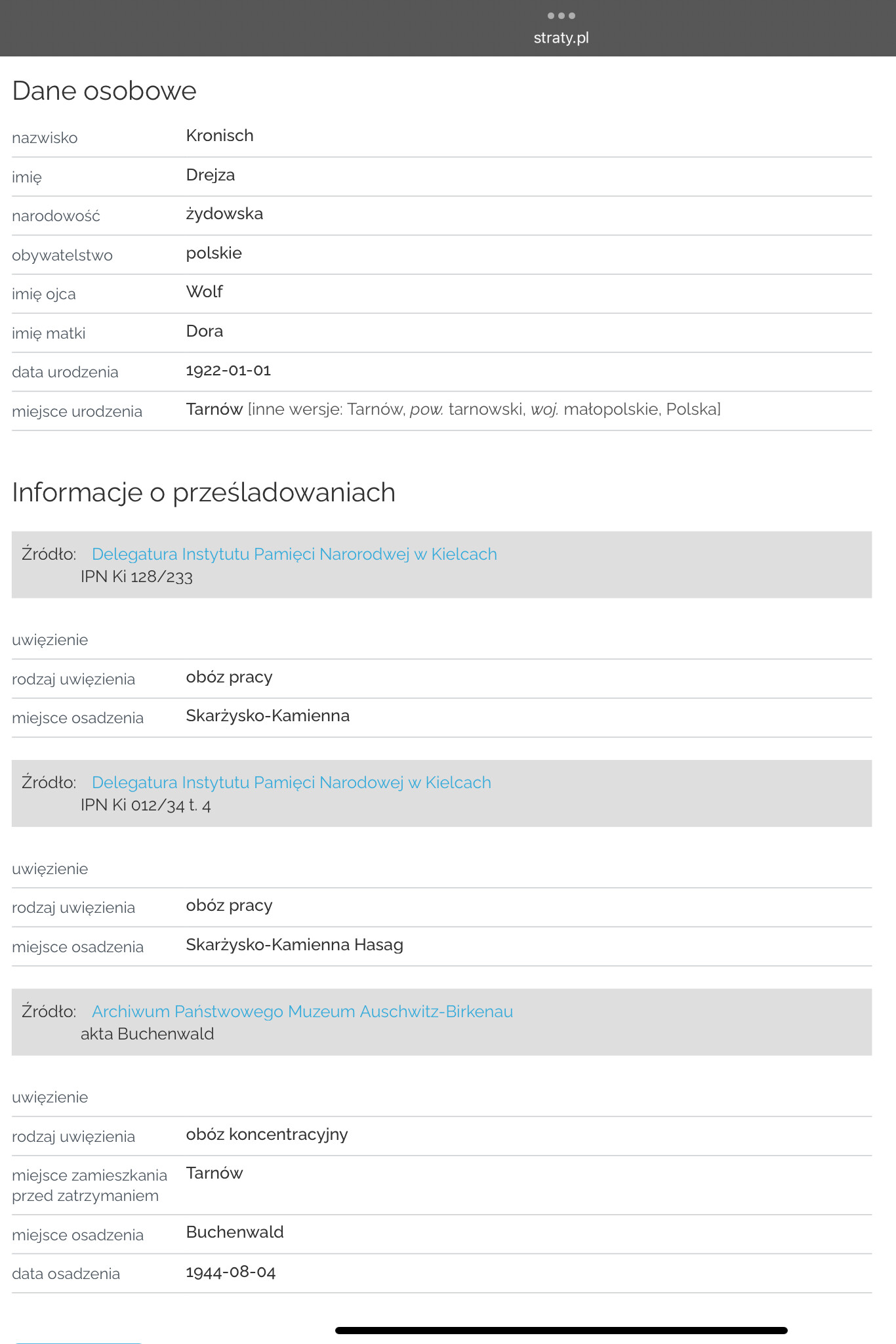from Skarżysko-Kamienna (according to her Arolsen files - (site is down right now)