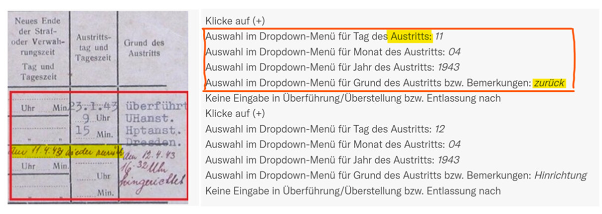 Ich habe dann den ganzen Block dupliziert (ohne die Straftat erneut einzutragen) und das Zurück-Datum im zweiten „Beginn der Strafzeit“ eingegeben.