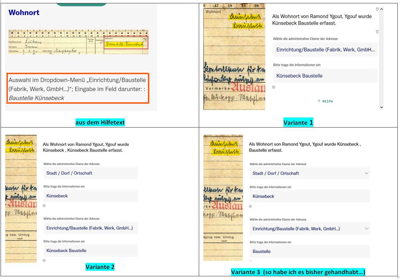 How important are „correct / correctly split“ entries in the administrative levels in these and similar cases? - Another example: enter „Firma XY“ in „facility/factory…“ or „employer“(I have opted for the first so far.)