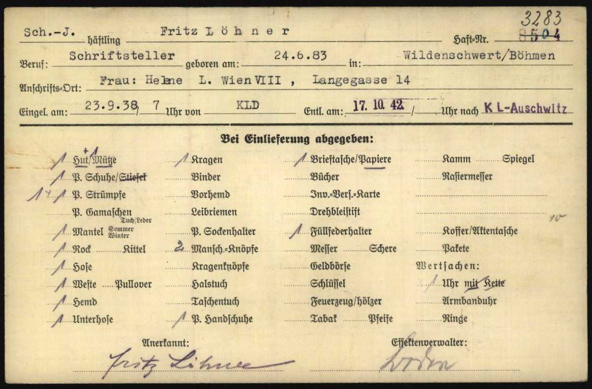 8504 könnte auch seine Dachaunummer gewesen sein, denn von dort kam er nach Buchenwald (siehe z.B. hier ) - Die Notiz vor der Nummer 3283 kann ich nicht entziffern.
