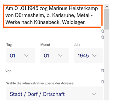 Personally, I have nothing against more complex workflows, and I generally don’t mind spending more time on a single document (like with the Buchenwald Personalbögen). The Halle documents, for example, could have been made a littele less cluttered if the deregistration section had its own seperat input field ( following the registration / change of registration section).